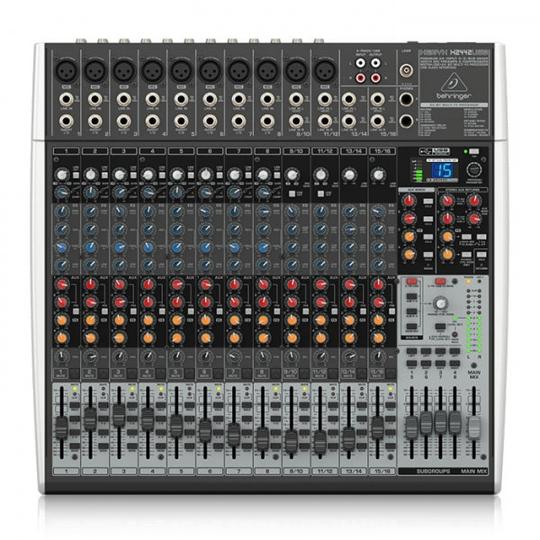 The X2442USB comes with 10 state-of-the-art, XENYX-powered mic inputs, 4 stereo channels, 4 Aux Sends and 4 stereo Aux Returns – and our easy to use “one knob” compressors, Inserts and direct Outputs on each of the mono channels. Other features available exclusive to the X2442USB are: 4 subgroups for mixing versatility; Main Inserts (the ideal path for connecting graphic equalizers or compressor/limiters); 8 Direct Outs and Sub Outs for analog recording purposes.