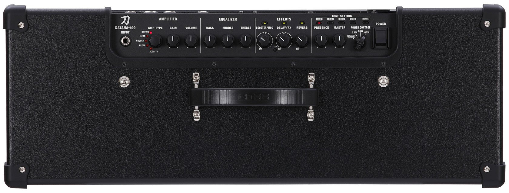 Sharpened to perfection by the BOSS engineering team, the Katana-100/212’s five amp characters offer everything from organic vintage tones to modern high-gain sounds. Clean is natural and transparent, while Crunch offers satisfying grit and response. Lead has a wide gain range to suit many styles, from fat, stinging blues solos to fluid legato shredding. With DNA inherited from the Waza amp, Brown delivers refined high-gain tone sought after by the world’s greatest rock players.