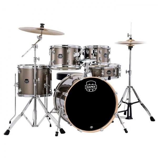 Mapex Venus is the complete drum kit delivering great sound and dynamic looks with everything needed to begin your "Drummer for Life" journey. Poplar shells with Mapex SONIClear™ bearing edges for quick and effortless tuning, and shorter tom size depths deliver instant full tone and allow for easier set up and tom positioning.